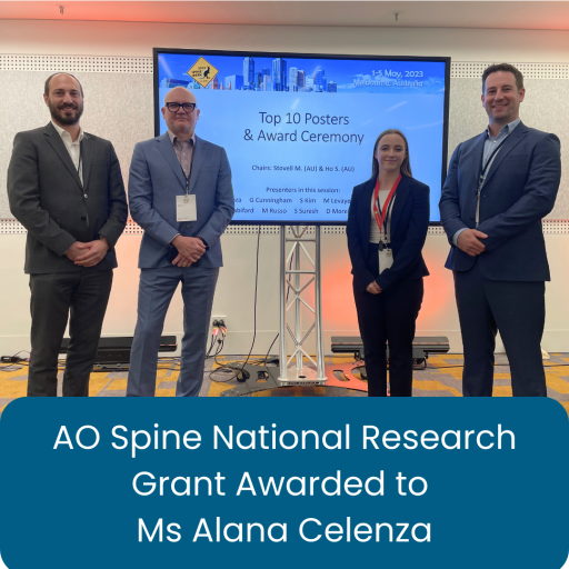 Neurospine Institute’s Research Assistant, Ms Alana Celenza, has been awarded the AO Spine National Research Grant. This grant is an $8,500 grant aimed to provide start-up funding for new spinal research projects for early and mid-career investigators. Ms Celenza is early in her research career having completed her Bachelor of Science in Molecular Genetics and […]