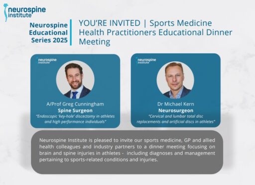 Neurospine Institute is pleased to invite our sports medicine, GP and allied health colleagues and industry partners to a dinner meeting focusing on brain and spine injuries in athletes – including diagnoses and management pertaining to sports-related conditions and injuries.